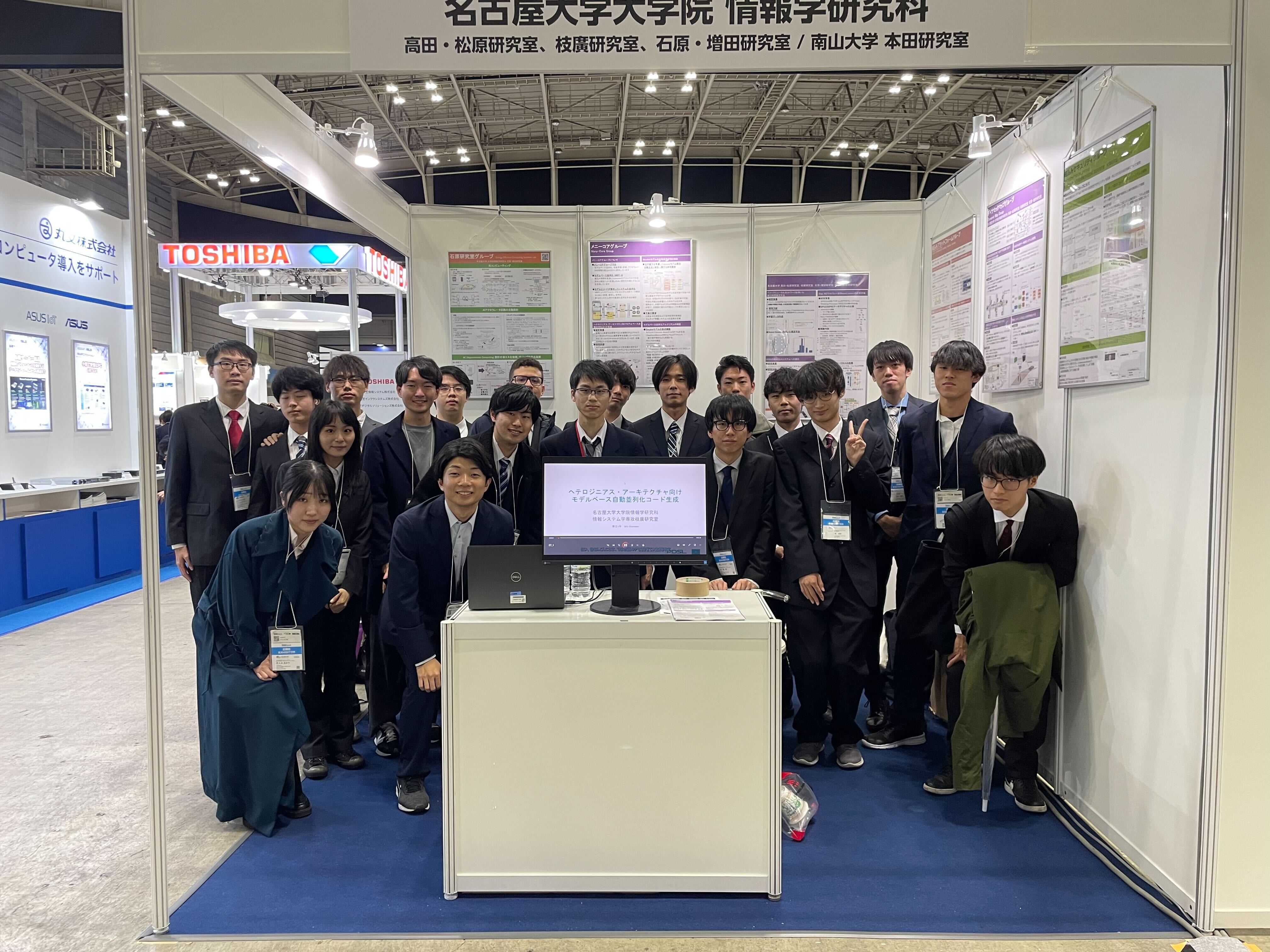 2023年11月15日から17日にかけて神奈川県のパシフィコ横浜で開催された EdgeTech+2023 において、M1の王さん、B4の川村くん、常くん、原くん、山口くんが研究紹介を行いました。本発表は、名古屋大学 高田・松原研究室、名古屋大学 枝廣研究室、南山大学 本田研究室との合同展示発表でした。