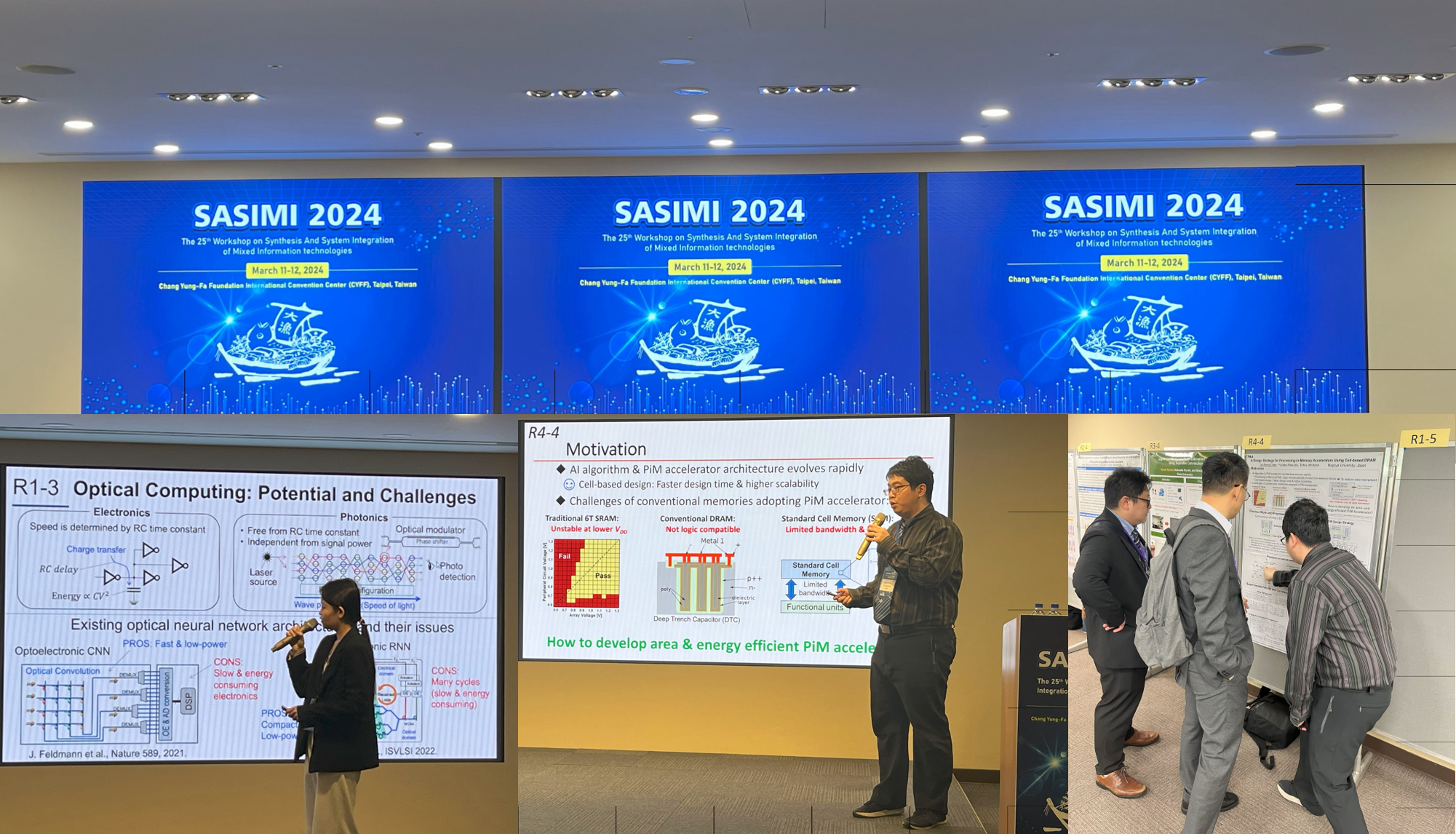 2024年3月11日と12日に台湾の台北で開催された The 25th Workshop on Synthesis And System Integration of Mixed Information technologies (SASIMI) において、M1の王さんとD2 の陳さんが研究成果を発表しました (発表日は王さんが11日、陳さんが12日)。口頭発表後のポスター発表では多くの質疑応答もあり大盛況でした。